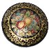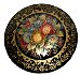 Description: This beautiful brooch was painted by a talented Mstera artist, Pavel Sorokin. It shows a bouquet of flowers painted with a thin brush in gold against the black background. The edges of the brooch are decorated with rich gold pattern.