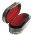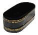 The box is constructed from paper-mache. Black lacquer is used to paint the exterior of the box while red lacquer completes the interior of the work.