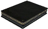 The box is made out of paper-mache. Black lacquer covers the exterior and red lacquer covers the interior of the box. Around the sides of the box the artist leaves an incredible gold floral design. The bottom border of the box is adorned with gold beads. The box has a hinge to the left and rests on four rounded feet.