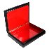 The box is made out of paper-mache. Black lacquer covers the exterior and red lacquer covers the interior of the box. The lid is hinged from the top of the scene, and the box rests on a flat bottom. The work is signed with the artist's name, Mstera and the title.