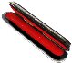The box is constructed from paper-mache. Black lacquer is used to paint the exterior of the box while red lacquer completes the interior of the work. The lid is hinged from the top of the scene, and the box rests flat. The work is signed with the artist's name and the village of Palekh.