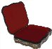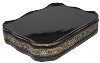 The box is constructed out of high-quality paper-mache. Black lacquer is used to paint the exterior of the box and red lacquer is used to paint the interior of the box. The lid is hinged from the top of the scene, and the box rests on four legs. The work is signed with the name of the artist, Palekh, and the year of 2015.