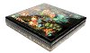 The painting is framed with golden ornament, and the box's sides are decorated with more rich ornamentation with additional silver flowers.