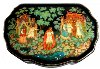 Description: This very large box was painted by the talented Palekh artists family-the Terentievs Sergey and Olga. It shows one of the scenes from the popular Russian fairy-tale "Tale of a Frog Princess".