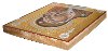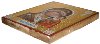 Description: This icon of Kazanskaya Godmother is a splendid specimen of modern Mstera lacquerware. According to the tradition of Russian icon painting, the work is painted in egg tempera paints. The halos above the heads of the Godmother and her child are painted with brillant gold paint. Gold is also used to create a frame around the depicted icon.
