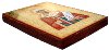This icon has been painted in the village of Kholui on the wooden base. According to the tradition of Russian icon painting, the work is painted in egg tempera paints and detailed with brilliant gold paint. The leaves of gold is also used to create a frame around the depicted icon.