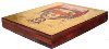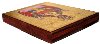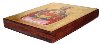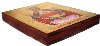 This icon has been painted in the village of Kholui on the wooden base. According to the tradition of Russian icon painting, the work is painted in egg tempera paints and detailed with brilliant gold paint. The leaves of gold is also used to create a frame around the depicted icon.