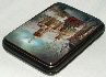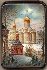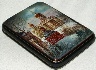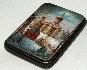 Description: This wonderful box was painted by Alexey Puchkov from Fedoskino. The composition depicts the St. Trinity Sergious Monastery located in the town of Sergiev Posad , one of the most interesting towns in Russia, located in 40 miles away to the north from Moscow. The town was built in the 14th century as a settlement around the St. Trinity Monastery established by reverend Saint Sergious Radonezhsky. He was canonized by the Russian Orthodox Church and became one of the most honored Russian Saints.