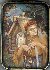 The composition is painted in the muffled yellow, brown and gray colors. A piece of mother-of-pearl is shimmered through the moon over the left upper part of the roof of the Hut and through the staff in her hand.