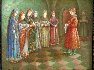 The work is called "Choosing a Bride", and features the ritual of choosing a bride for a tsar in medieval Russia. To arrange this important procedure, the most beautiful girls of the country, both noble and plain, were asked to appear before the tsar. The number of arrived candidates may achieve up to 1500 persons. To gather such a considerable number, elections were held not only in the districts neighboring Moscow, but also in remote districts of the country. In this case "the accordance instructions" had been sent: the girls must be definite centimeters in height and have definite features. Then, the candidates came to the tsar for review, and he chose only one of the girls, the others were let off with peace and presents. Very often the Russian tsars chose brides from plain families, considering feminine beauty as the most important criterion of their choice.