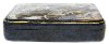 Rich gold line frames the composition.The box's sides imitates the color of blue marble; the bottom is black, while the interior of the box is traditionally red.