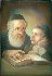 Description: This peaceful composition of a Jewish family - a Grandpa and a Grandson reading a book, was painted by talented Oleg Petrov of Fedoskino. The family is sit at the table and a child is catching every word of the adult.