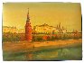 Painted in red and yellow palette this scene opens up a grandiose panorama before the viewer's eyes. White-stone cathedrals and splendid palaces rise above the embankment of Moscow River. The composition is structurally correct, and the sky's depth is amazing. The overall detail on the scene is simply incredible!