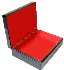 The box is constructed from paper-mache. Black lacquer is used to paint the exterior of the box while red lacquer completes the interior of the work. The box is hinged at the top of the composition and rests on four round legs.