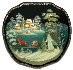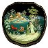 The box shows the scene from the popular Russian fairy-tale "The Snowmaiden". In the center of the composition the artist depicts the Snowmaiden. The horse is towing a sledge with a horseman and a lady across the iced frozer river.