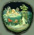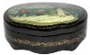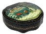 Description: This almost heart-shaped box was painted by the talented Palekh artist Ludmila Gelisheva.