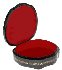 The lid is hinged from the top, and the box rests on a wavy platform.