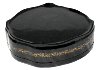 The box is constructed from paper-mache. Black lacquer is used to paint the exterior of the piece while red lacquer completes the interior of the work.