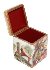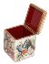 The box is made of paper-mache. White cream lacquer is used to paint the exterior of the piece while red lacquer completes the interior of the box. The lid is hinged from the top of the box, and the box is rests flat. It work signed with the artist's name, village of Fedoskino and the title.