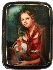 Description: This portrait of a girl with a basket of grapes is a wonderful creation of Mishin. The palette contains bright, rich oil paints. Mother-of-pearl shines through the girl's kerchief. Fine brushwork is used by the master along with gentle execution to develop the most realistic of features upon the girl's complexion.