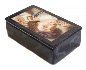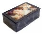 The composition is framed with a gold hand-painted line, another gold line can be found on the sides of the box. The sides of the box are decorated with figures of the humans, animals and mythical objects.