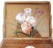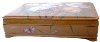 The box's lid, and its exterior bottom, and EVEN interior of the box shows bright butterflies hovering over Narcissus Flowers.The sides of the box has paintings of different plants. Gold metal leaf shines brilliantly through the wings of each butterfly!