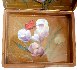 The box is constructed from paper-mache. A hinge is fastened to the top of the scene, and the box rests on the four legs. The work is signed with the artist name, Fedoskino and 2012.