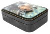 Description: Well-known talented Fedoskino artist Shavirin Boris is a creator of this charming box. It features a portrait of a beautiful lady stayed in front of a window, covered with frozen ornaments.