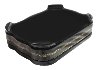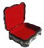 The box is constructed from paper-mache made. Black lacquer is used to paint the exterior of the piece while a red lacquer completes the interior of the work. A hinge has been fastened to the top of the composition and the box rests on four legs.
