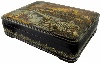 The box is made out of paper-mache made in Kholuy. Black lacquer covers the exterior and red lacquer covers the interior of the box. Gold and aluminum scrollwork frames the scene on the lid, while highly complex ornamentation also painted in gold and aluminum makes it way around the sides of the box. The box has a hinge above the scene and rests on four legs. Along the ribbon depicted in the upper part of the composition the artist writes St. Petersburg in Russian and English, and also the year of its foundation: 1703. The work is signed with the artist's name, the title, the village at the bottom of the composition. This inscription is repeated on the lid's interior, with the addition of the year when the box was finished (2005), and the confirmation that it is the artist's original work.