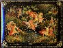 Description: This small box is a creation of well-known Kholui Master Zakharov Sergey. It shows several scenes from the Russian folk fairy-tale "Ivan Tsarevich and the Grey Wolf". Ivan returns to his native kingdom with the beautiful wife, and the magic firebird. His faithful friend, the Grey Wolf , carries them all on his back while jumping over the hills, the forests and the rivers.