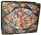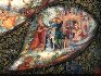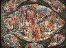 The palette here is very diverse, incorporating reds and browns in a bright array of combinations. Gold is used to enhance the already intricate detailing and bring out the true power of his palette. Lot's of golden intricate onaments has devided the composition in several parts.