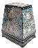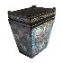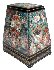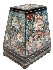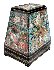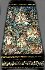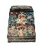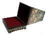 The edges of the lid and the sides of the box are adorned with elegant gold and aluminum ornamentation. The bottom of the casket is also decorated with gold and aluminum filigree ornamentation. The casket is made of paper-mache.