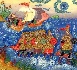 The artist who composed and painted this fantastic work of art is Mikhail Ivanovich Strunin, chief artist of the Center of Traditional Mstera Miniature. His composition shows his mastery of Russian iconography. He uses an icon method that has been developed over many centuries, which combines a series of meaningful frames to tell a complex story in one image. Icon painting distorts time, space, and proportion to create an image full of complexity and meaning. Subtle application of gold and silver paint is used to add definition and ornamentation to the scene. Strunin's wide use of color, fine detail and multiple layers of action have created this unique and intriguing work of art.