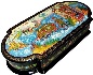 So read Pushkin's lines, inscribed on the bottom of this box. In this original composition by Mikhail Strunin of Mstera, Prince Gvidon stands on the threshold of his palace, as Chernomor's 33 wariors emerge from the sea. Tsar Saltan's kingdom lies in the distance. His merchants set sail, and will soon discover all of the wonders of Gvidon's magical land.