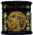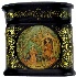 Description: This small box has been created by O. Presnyakova from the village of Mstera. It is called "Easter", and shows how the Russians celebrate this religious feast. Easter is the main religious feast in Orthodox Russia. At Eastertide Russian people cover eggs with bright paints to present them to their relatives and friends, cook Easter cakes, visit churches to attend service, and go to cemeteries to put flowers on graves of their nearest and dearest.