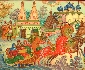 The artist has depicted a typical winter afternoon in the region of Suzdal. Two troika drivers race their passengers across the icy landscape. Situated along the banks of the Kamenka River, just north of the city of Vladimir, the town of Suzdal contains 200 historical and architectural monuments. The city is over 900 years old, and some of the churches and buildings date back to the 13th Century. With so much history retained in this city, and with such beautiful surroundings, it's no wonder that Suzdal has become a common theme in the miniature paintings of Russian lacquer art.