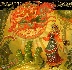 Most of the composition is painted in mustard tones, except the figures of the Red Rider and the girl painted in bright red tones. Gold paints are used to enhance the detail and to outline areas of the scene for added emphasis; for example gold is found in the depiction of the sun behind the Red Rider. The composition is extremely well executed. A distinct feeling of fantasy has been created here. This is a very complete work.