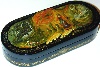 Description: This box painted by the famous Mstera artist Anatoly Shirokov depicts the scene, from the tale "Vasilisa the Beautiful. It depicts the moment of the tale when Vasilisa meets three riders: the Red Sun Rider, the Dark Night Rider, and the Bright Day Rider.