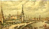 Painted in yellow-brownish palette this scene opens up a grandiose panorama before the viewer's eyes. White-stone cathedrals and splendid palaces rise above the embankment of Neglinka River. The composition is structurally correct, and the sky's depth is amazing. The overall detail on the scene is simply incredible!