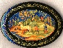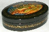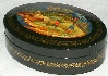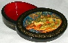 Description: This traditional Mstera box has been drawn by Svetlana Trondina. The work is called "Cutting Wood", and shows a scene from peasant everyday life. The color palette is dominated by green, blue and red tones of tempera paints. Gold paint is used to enhance various details throughout the scene.