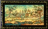 Description: This traditional Mstera box that shows the summer landscape with a shepherd pasturing sheep on the riverside has been drawn by Pavel Mozhaev. The artist's palette is full of natural tones. Good brushwork and a steady hand allow the artist to add a great amount of detail and create a balanced composition.