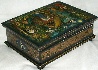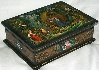 Description: This colorful box has been painted by the Mstera artist Antonina Medvedeva. Her highly original works are much in demand by collectors. Here the artist has chosen to depict a scene from the Russian fairy-tale