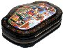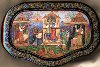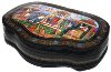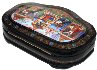 The composition is painted in soft pastels and richly detailed with brilliant gold paint. Gold paint is also used to decorate the box's exterior with very elaborate and ornate patterns.
