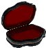 The box is made out of paper-mache. Black lacquer covers the exterior and red lacquer covers the interior of the box. The lid is hinged, and the box rests on wavy legs. The work is signed with the artist's name, the village of Mstera, and the title.