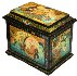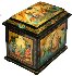 Description: This large box was created by Mstera artist Anastasiya Shirokova. She is the daughter of the prominent Mstera artist Anatoly Shirokov. In the choice of color and peculiar representation of fairy-tale characters her works bear resemblance to the works of her father. This piece is a feast for the eyes, and a handsome addition to any collection.