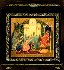 The box's lid and all four sides feature various episodes from the Pushkin's "Tale of Tsar Saltan". The right side features Price Gvidon saving Princess Swan from the hawk's attack. The rear side shows Princess Swan appearing before the amazed Prince Gvidon in her human form. On the left side we can see Prince Gvidon who hovers over the Tsar Saltan's chamber turning into a bee, none of the tsar's servants can catch the insect. The front side depicts Tsar Saltan's fleet approaching the rich island of Prince Gvidon. The lid shows Prince Gvidon and Princess Swan welcoming Tsar Saltan with bread and salt (it is an old Russian custom to meet guests with bread and salt); over the figures of Prince Gvidon and Princess Swan the artist has written the following extract from the fairy-tale: "There is a wondrous island surrounded with the blue sea; the marvelous town with beautiful gardens, rich palaces and golden domed churches are located there..."