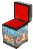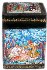 The box shows several moments from the fairy-tale "Talkative Wife". The entire surface of the box's exterior (except the exterior bottom) is covered with colorful scenes drawn in the traditional Mstera style. Gold and aluminum paint is used to enhance various details, and also to add a definitive sparkle to the scenes.