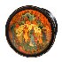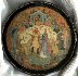 The scene is painted in the traditional Mstera style. The lid is decorated with intricate floral and leafy patterns painted with tempera paints. The box's sides are decorated with a nice gold leafy pattern.