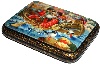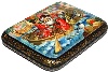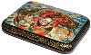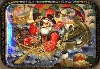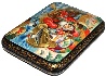 Description: Talented Artist Mozhaeva from the village of Mstera has painted this colorful box. It is based on the Pushkin's "Tale of Old Fisherman and the Golden Fish". In this tale the old fisherman caught the magic golden who promised to fulfill all his wishes. The fisherman was a simple-minded man who didn't want anything but his greedy wife forced him to ask the fish to fulfill more and more wishes. In the end the fisherman's wife was punished by the magic golden fish.